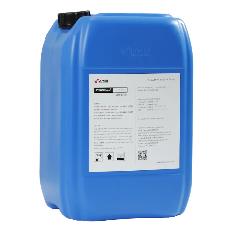 高效螯合与渗透成分,加速钙镁垢溶解是核心优势。进口清洗剂含高活性螯合剂(如氨基三亚甲基膦酸、乙二胺四乙酸衍生物),这类成分能与钙镁离子形成稳定的水溶性螯合物,打破钙镁垢的晶体结构——传统清洗剂仅能通过酸碱反应缓慢溶解垢层,而螯合剂可直接“抓取”垢中的钙镁离子,使坚硬的垢层从膜表面剥离并溶解。同时,清洗剂添加渗透促进剂(如醇醚类物质),能快速穿透钙镁垢的致密层,让螯合成分深入垢内部,避免“表面溶解、内部残留”的问题。在电厂RO系统中,含该成分的进口清洗剂可在1小时内溶解80%的钙镁垢,较普通清洗剂效率提升3倍以上。