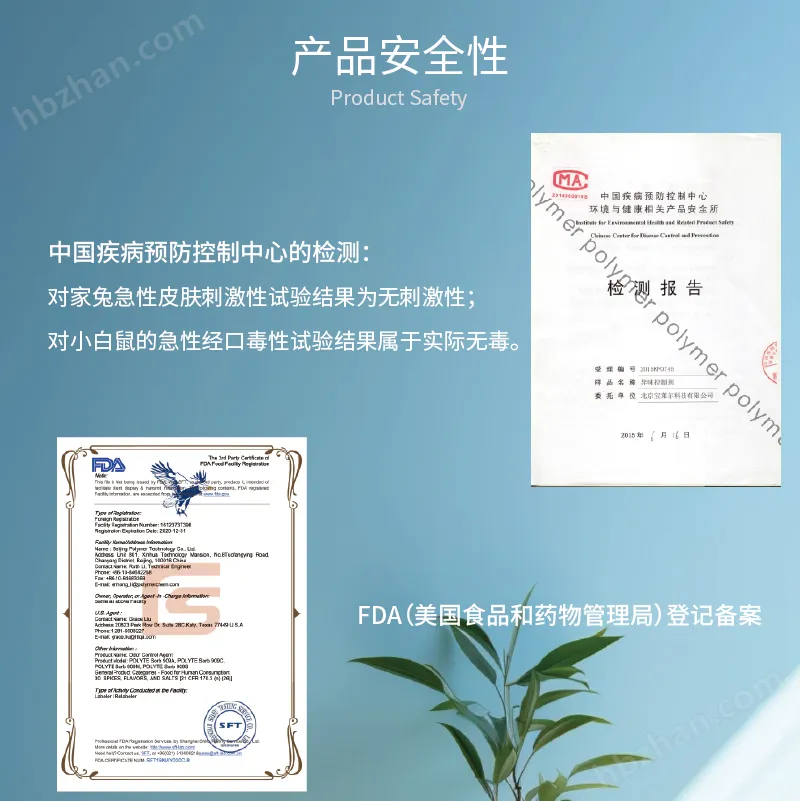 4)中国疾病预防控制检测,对家兔急性皮肤刺激性试验结果为无刺激性,对小白鼠的急性经口毒性试验结果属于实际无毒;