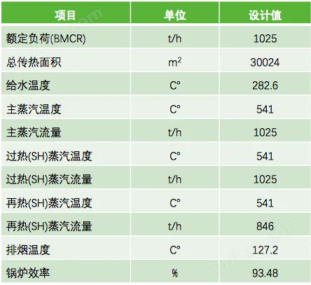 锅炉及主要设计参数