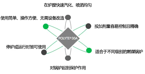 宝莱尔POLYTE®30A锅炉除焦剂,与煤质混合后在燃烧加热中发生化学反应,通过增加灰烬组分的熔点和松散性,控制火侧的结焦、沉积和腐蚀,进而促进煤炭燃烧、扩大燃烧体积、增加热传导面积、提高热效率。