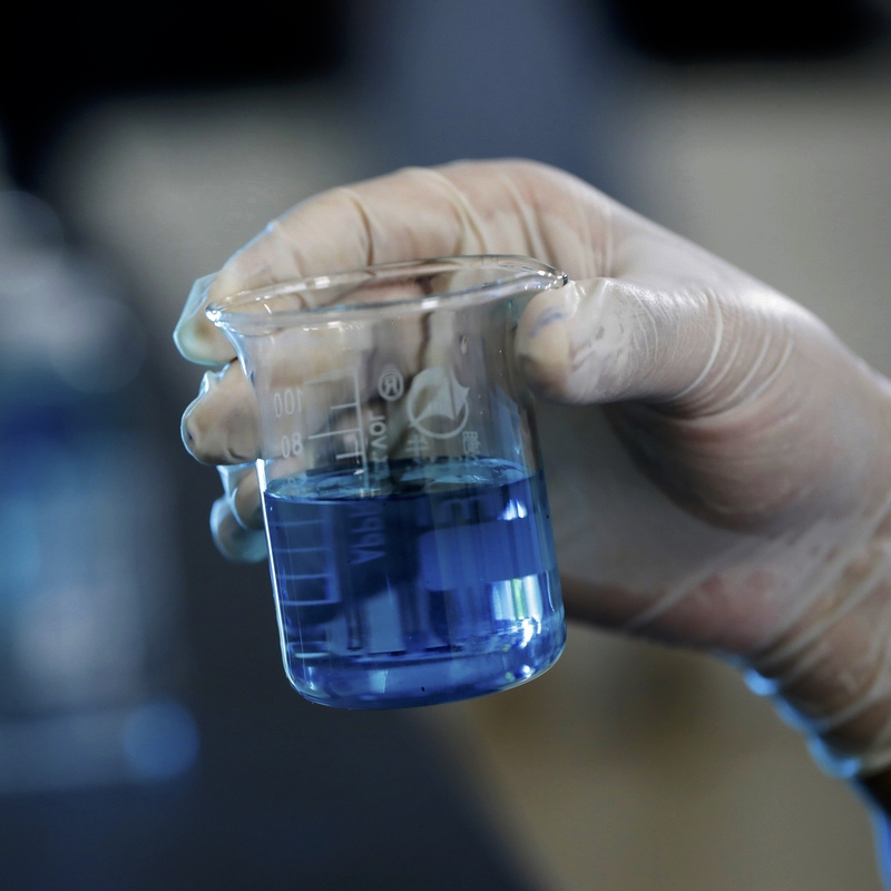 主要特性:深蓝色透明液体;密度(20°C): 1.05±0.05 g/cm3;酸味。